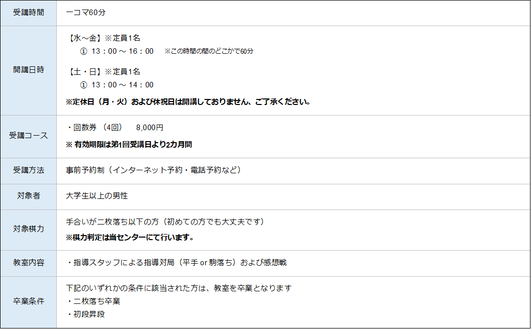 将棋に興味を持った方や将棋の基本から学びたい方におすすめのコースです。