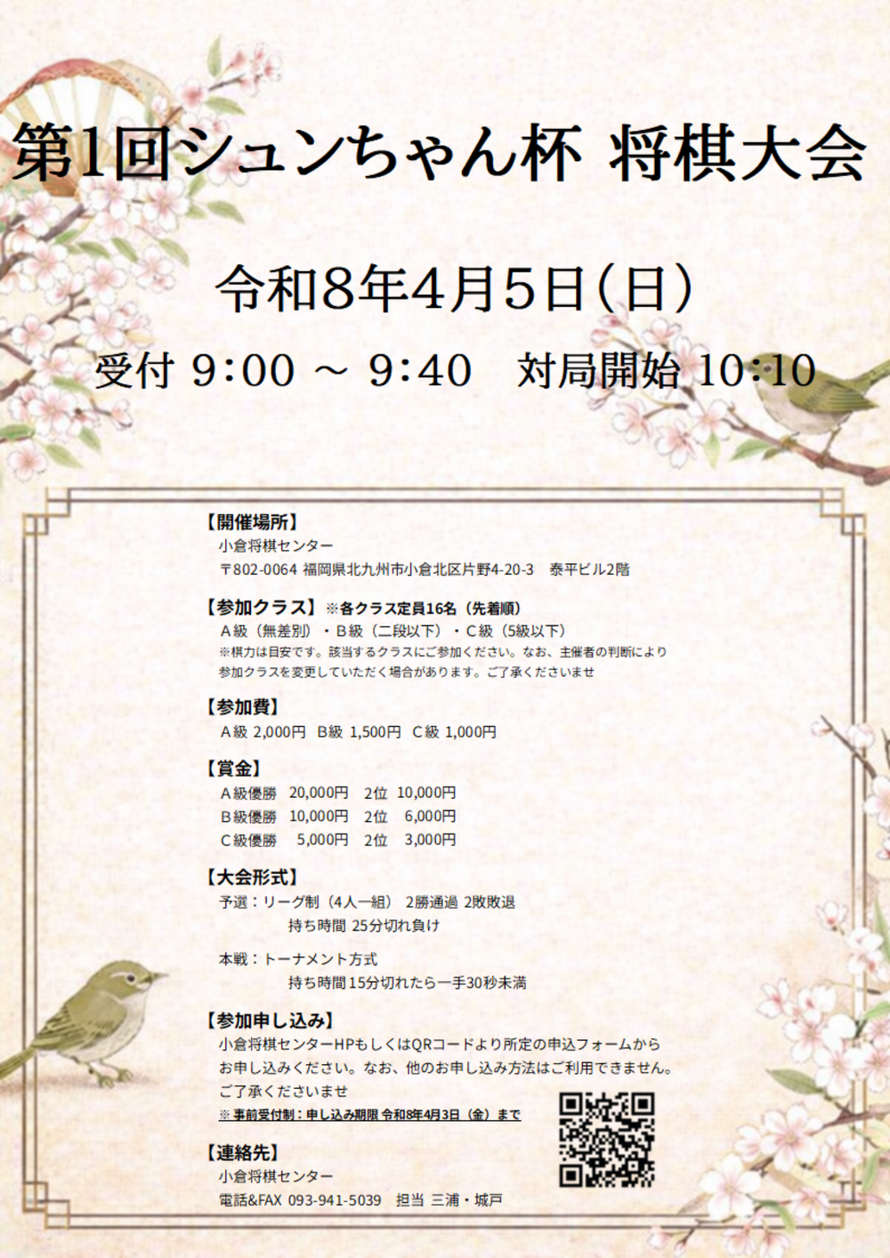 第1回シュンちゃん杯 将棋大会開催のお知らせ