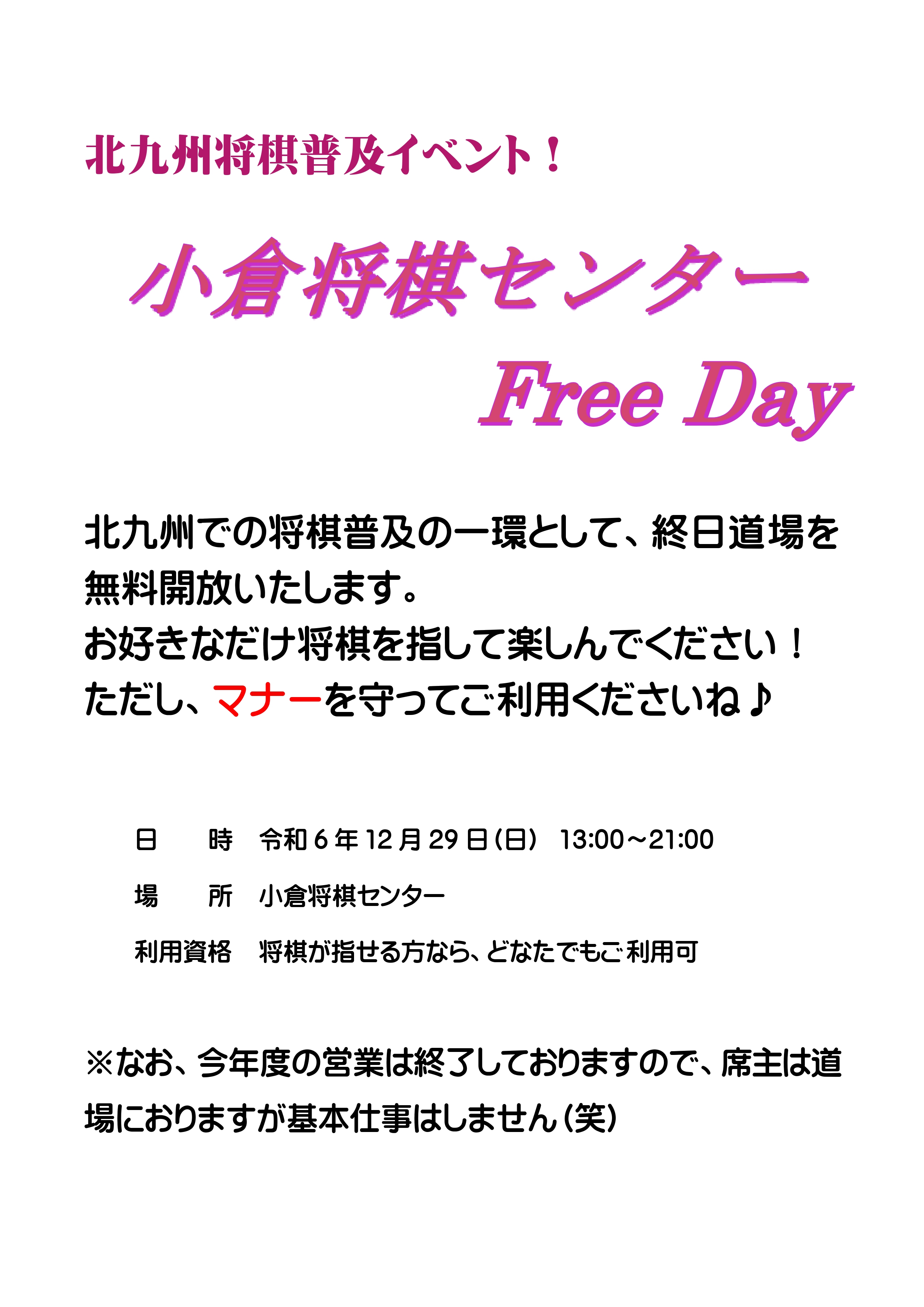 ・Free Day(小倉将棋センター 無料開放日)