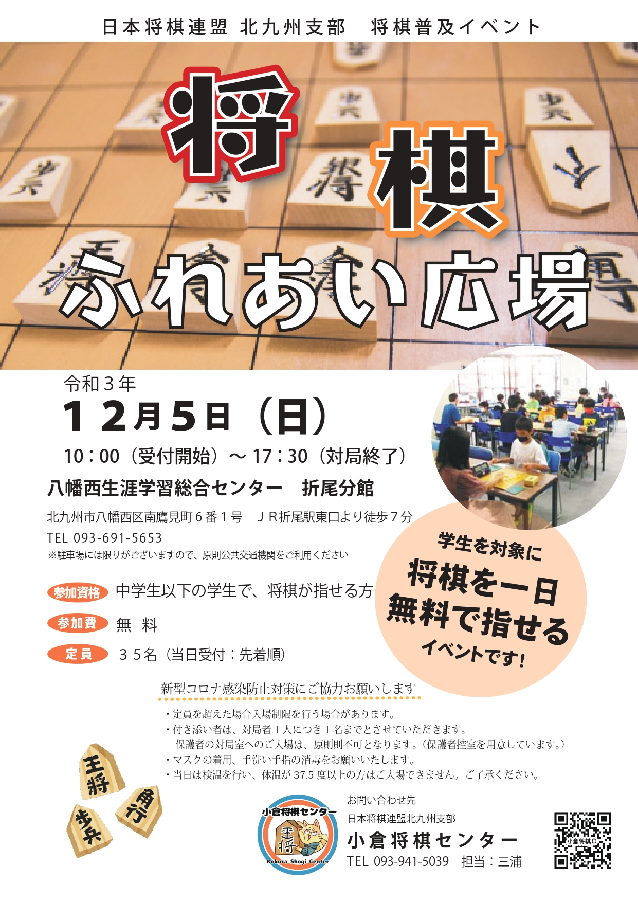 原則的に「日本将棋連盟北九州支部」として開催しており、主に学生及び女性を対象としています。